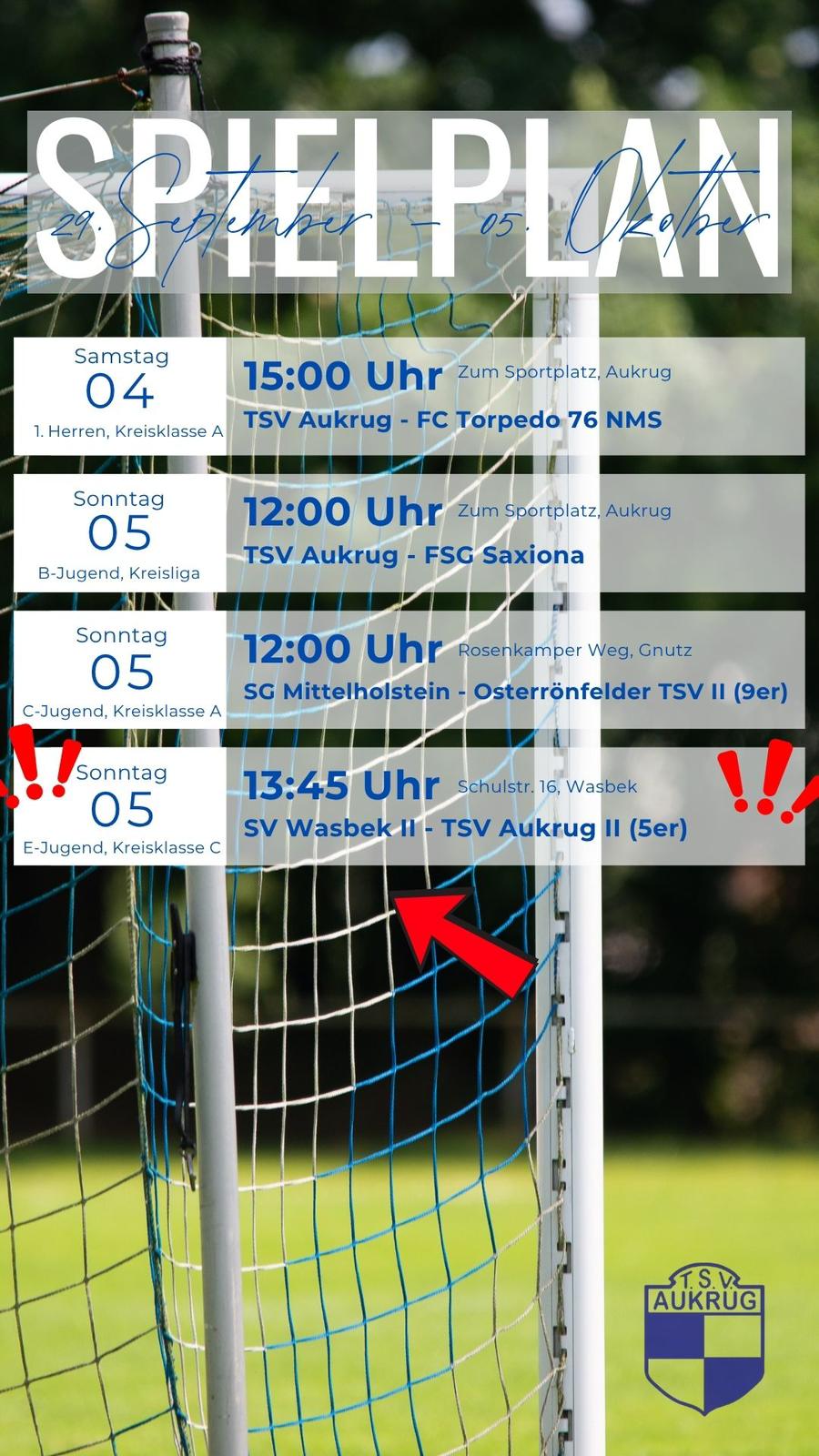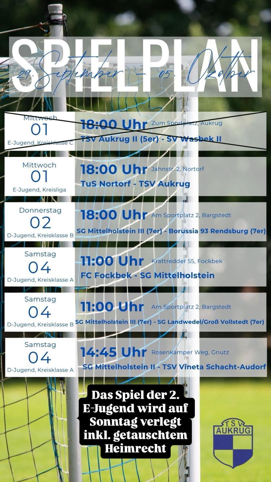 Vereinsspielplan vom 29.09. - 05.10.2025